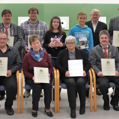 Einen besonderen Dank für die Treue zum Verein sprach er an die langjährigen Mitglieder aus. Zusammen mit dem Ehrungsausschussvorsitzenden Volkmar Sirtl überreichte er für 25jährige Mitgliedschaft an Tobias Mattes, Markus Moller, Andreas Maderer, Gabi Mark, Josef Kreinhöfer, Werner Moller, Christian Mattes, Thomas Konrad und Daniela Bauer eine Urkunde und einen guten Schluck. Für 40 Jahre Mitgliedschaft ehrte er Norbert Häupl und Alfons Winkler. Anneliese Lippert und Maria Schwingshandl sind 50 Jahre aktiv im Verein. Maria Schwingshandl nutzte die Gelegenheit, dem Vereinsvorsitzenden ein Erinnerungsbild der Fahnenweihe von 1954 mit Bildunterschrift zu überreichen. Viele der abgebildeten Personen wären ansonsten in Vergessenheit geraten.