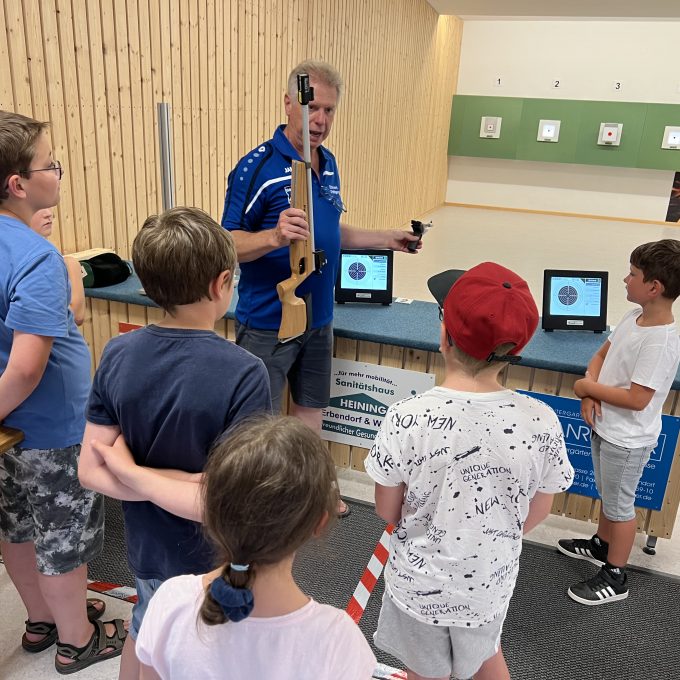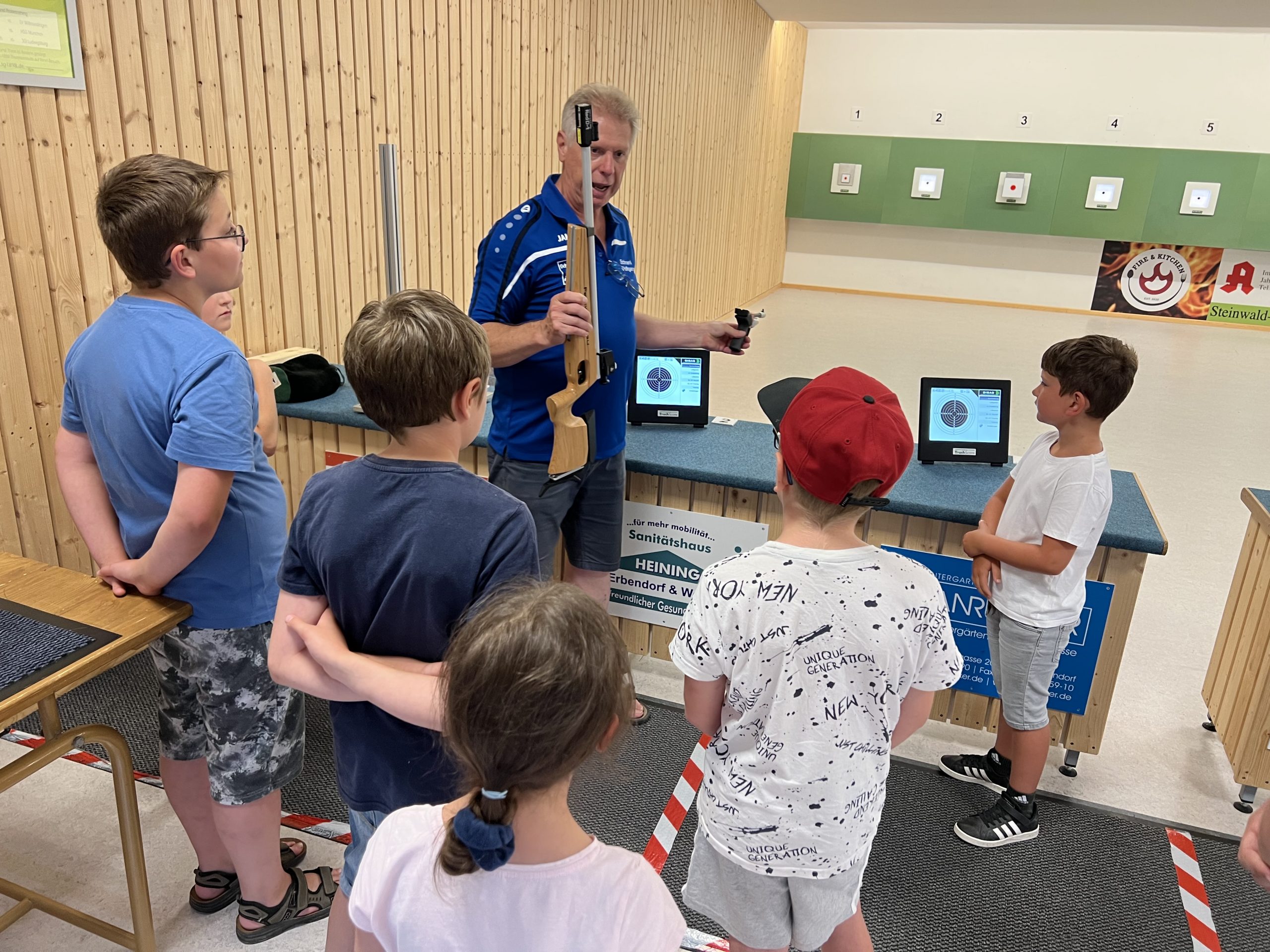 Einweisung der Interessenten durch Jugendleiter Wolfgang Schraml in das Schießen mit Licht.