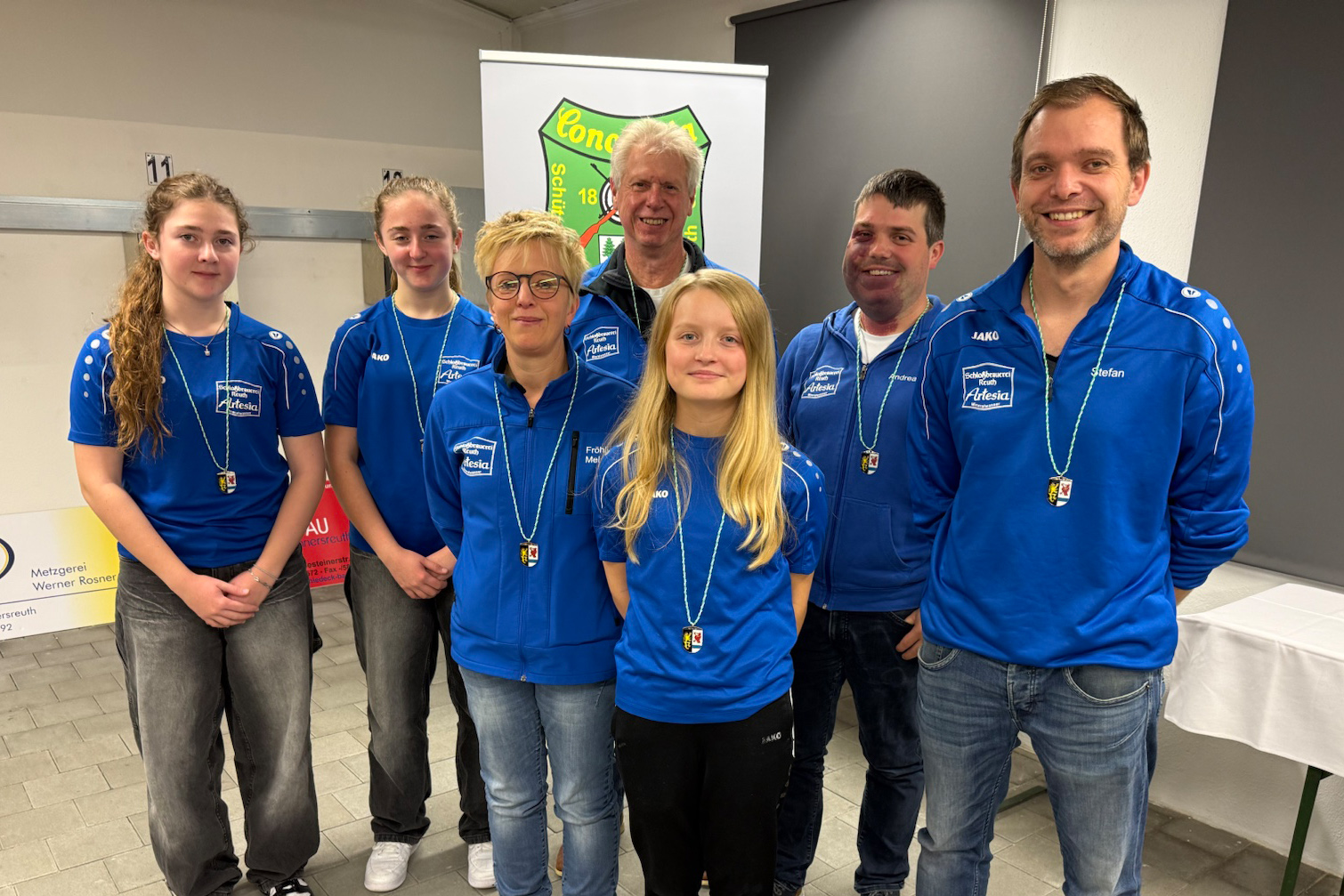 Schützen: Stella Schieder (14,3 Teiler), Karl-Heinz Hein (33,1 Teiler), Leonie Härtl (35,5 Teiler), Stefan Hein (43,9 Teiler), Wolfgang Schraml (58,4 Teiler).