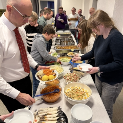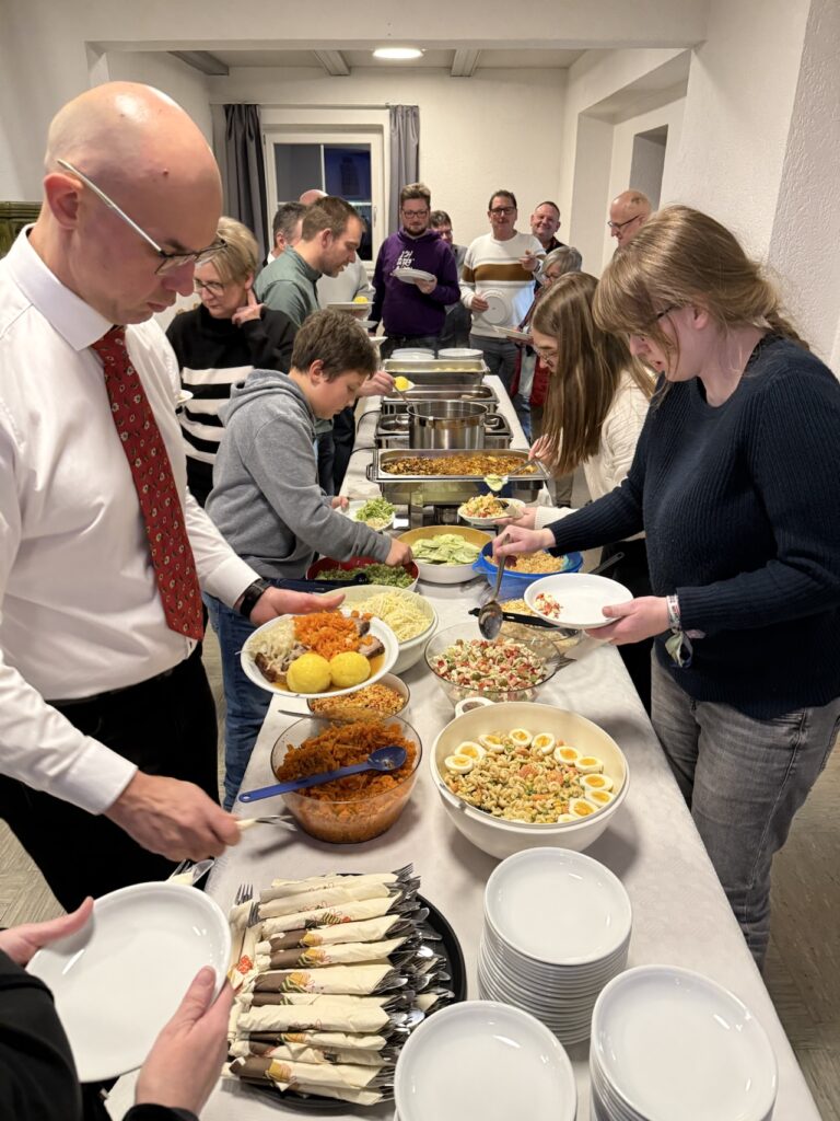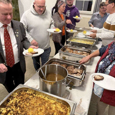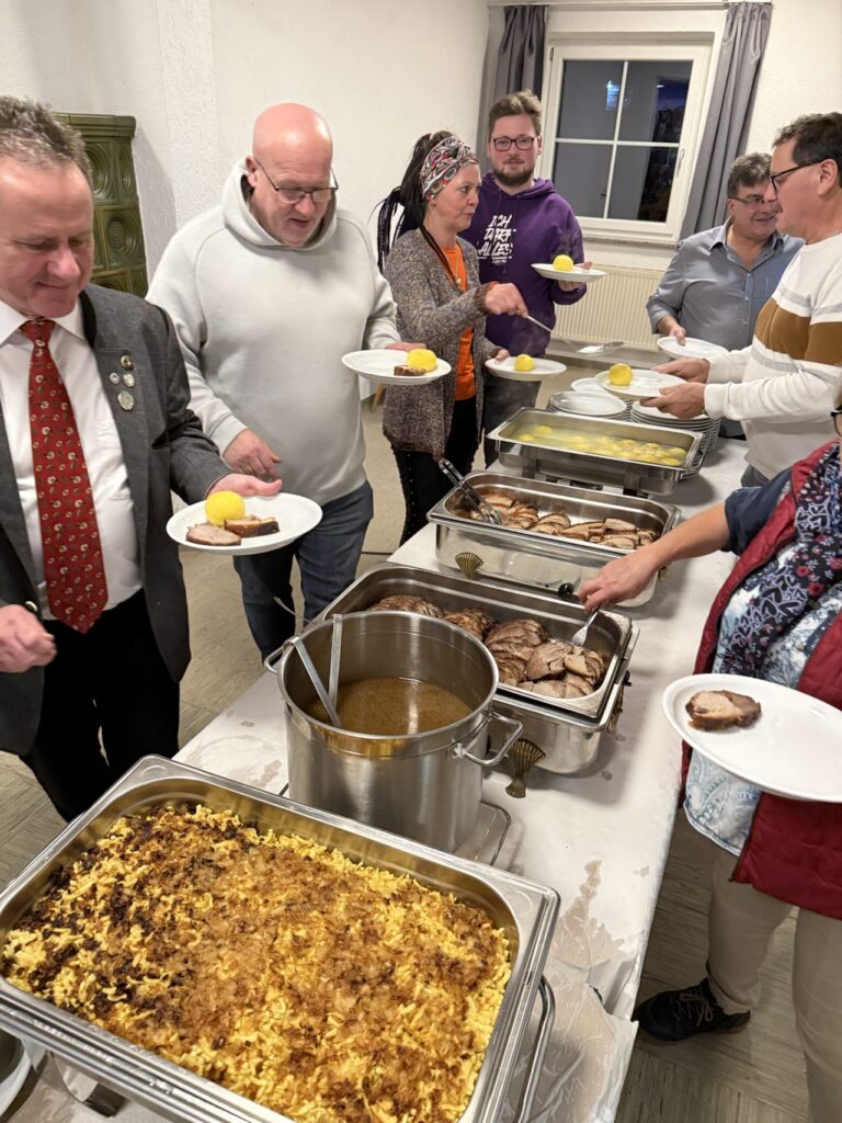 Da das Wirtshaus derzeit von den Schützen selbst betrieben wird, verwöhnte Schützin Daniela Höcht gemeinsam mit ihrem Team, Eleonore und Angelika Greger, die Gäste mit einem hervorragenden Schweinebraten. Ein abwechslungsreiches Salatbuffet wurde von den Schützendamen beigesteuert – so war für jeden Geschmack etwas dabei.